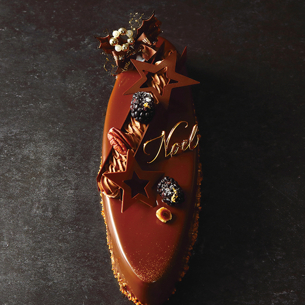 クリスマスの夜空をイメージした艶やかなケーキ。フランス産チョコレートを使用したムースとショコラ生地が濃厚な味わいです。